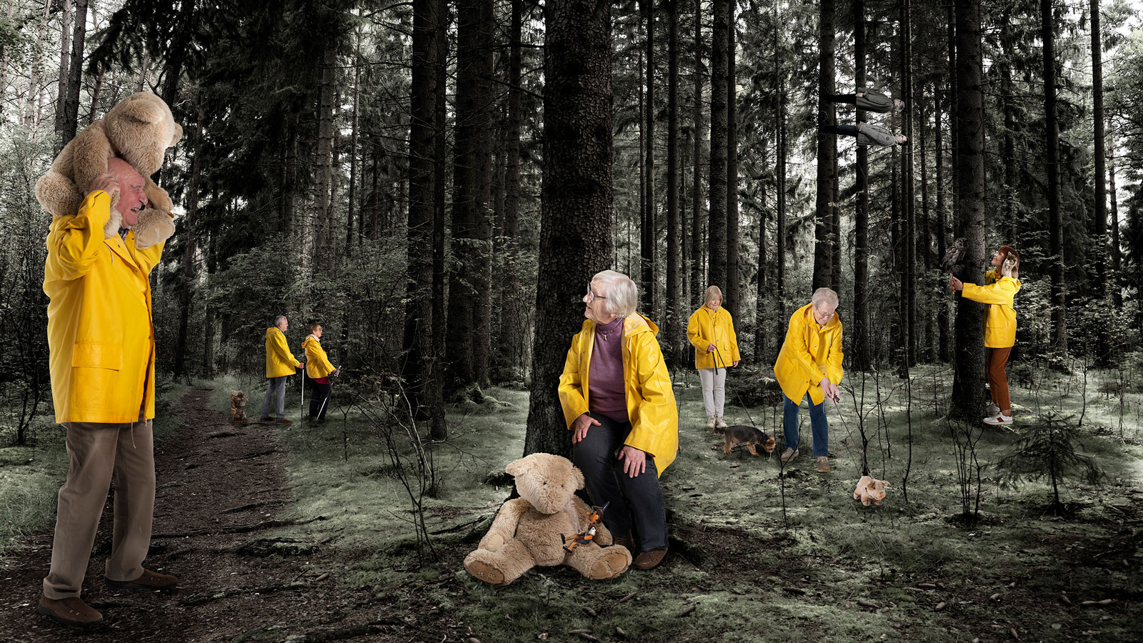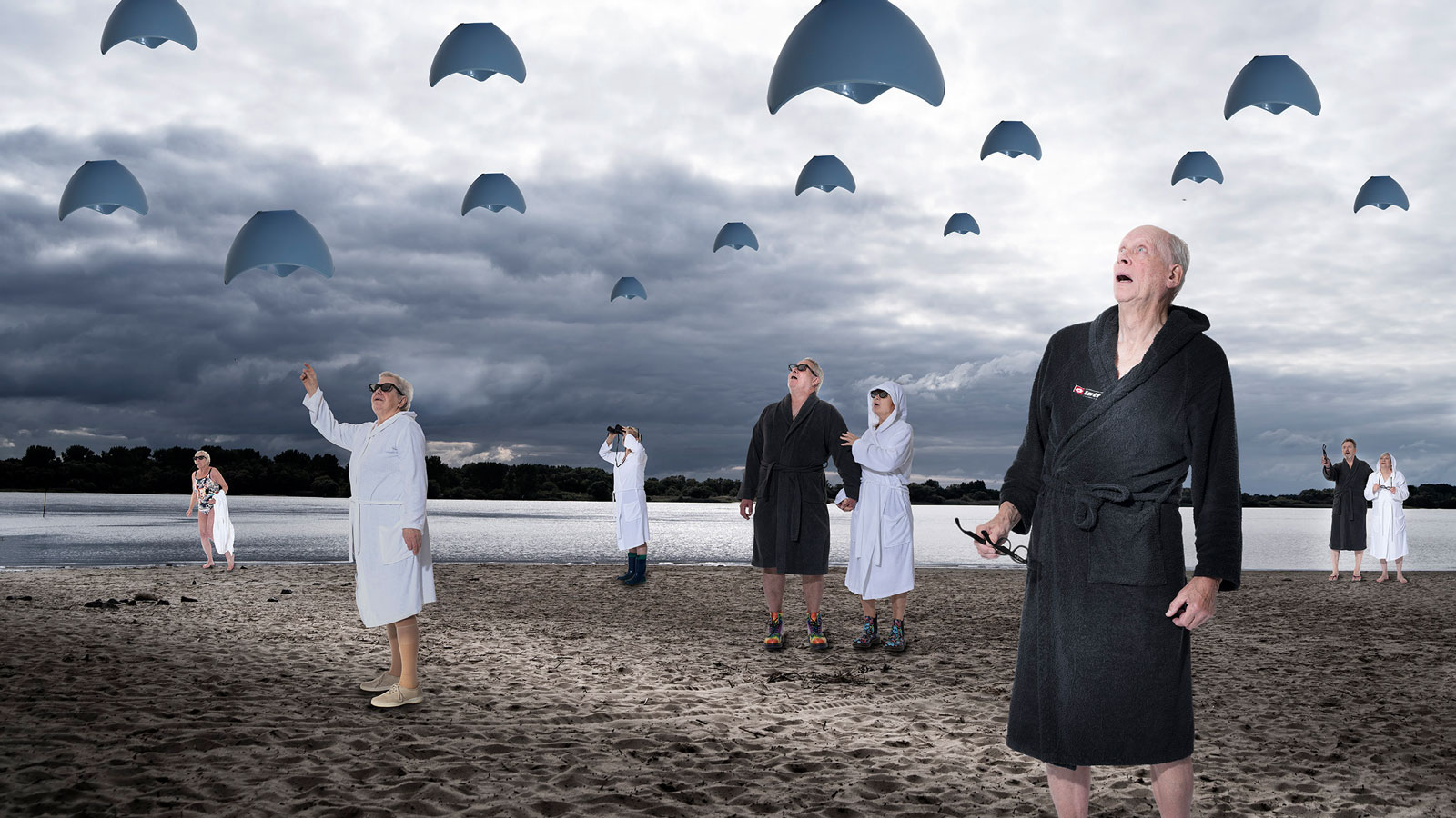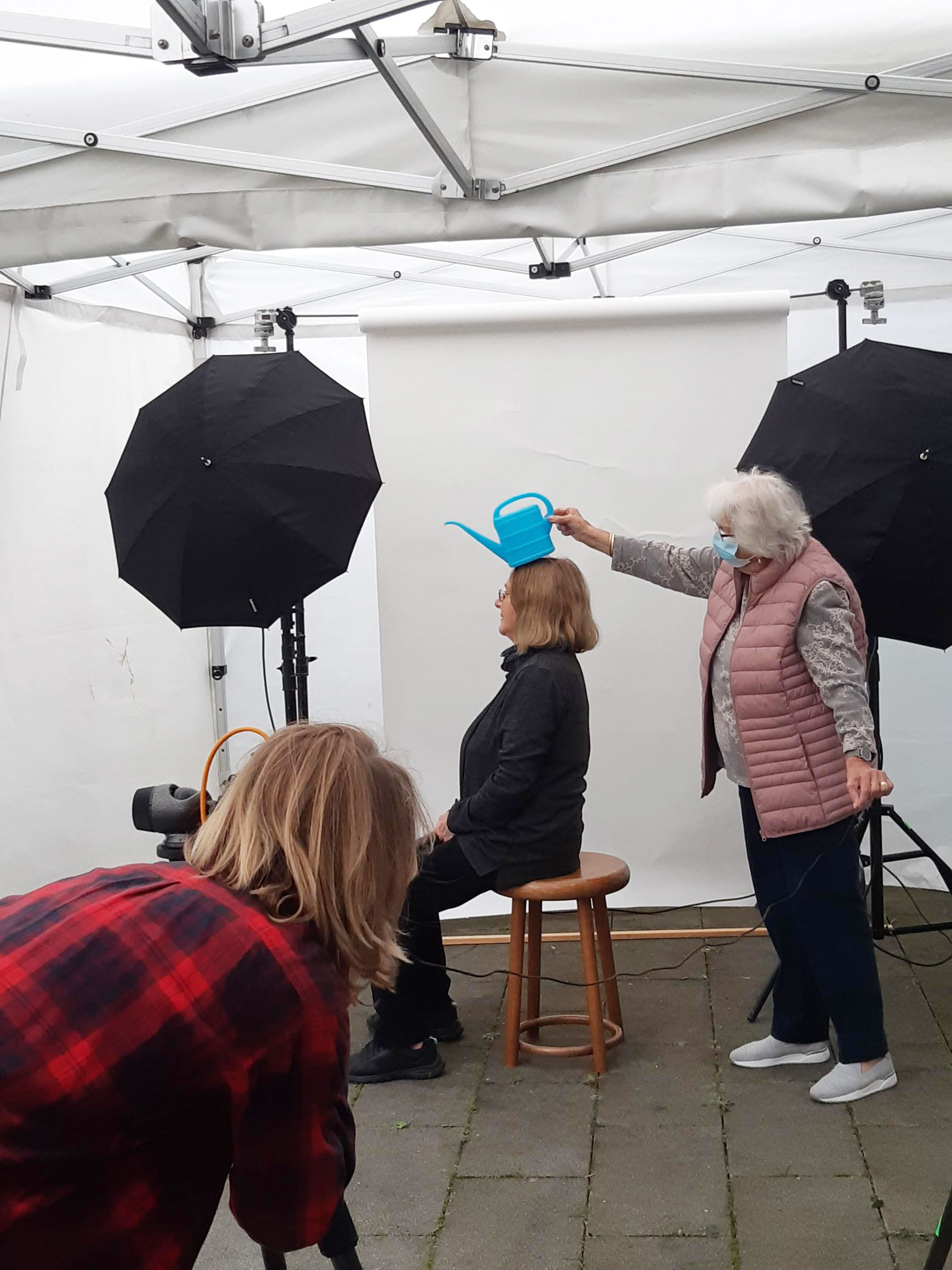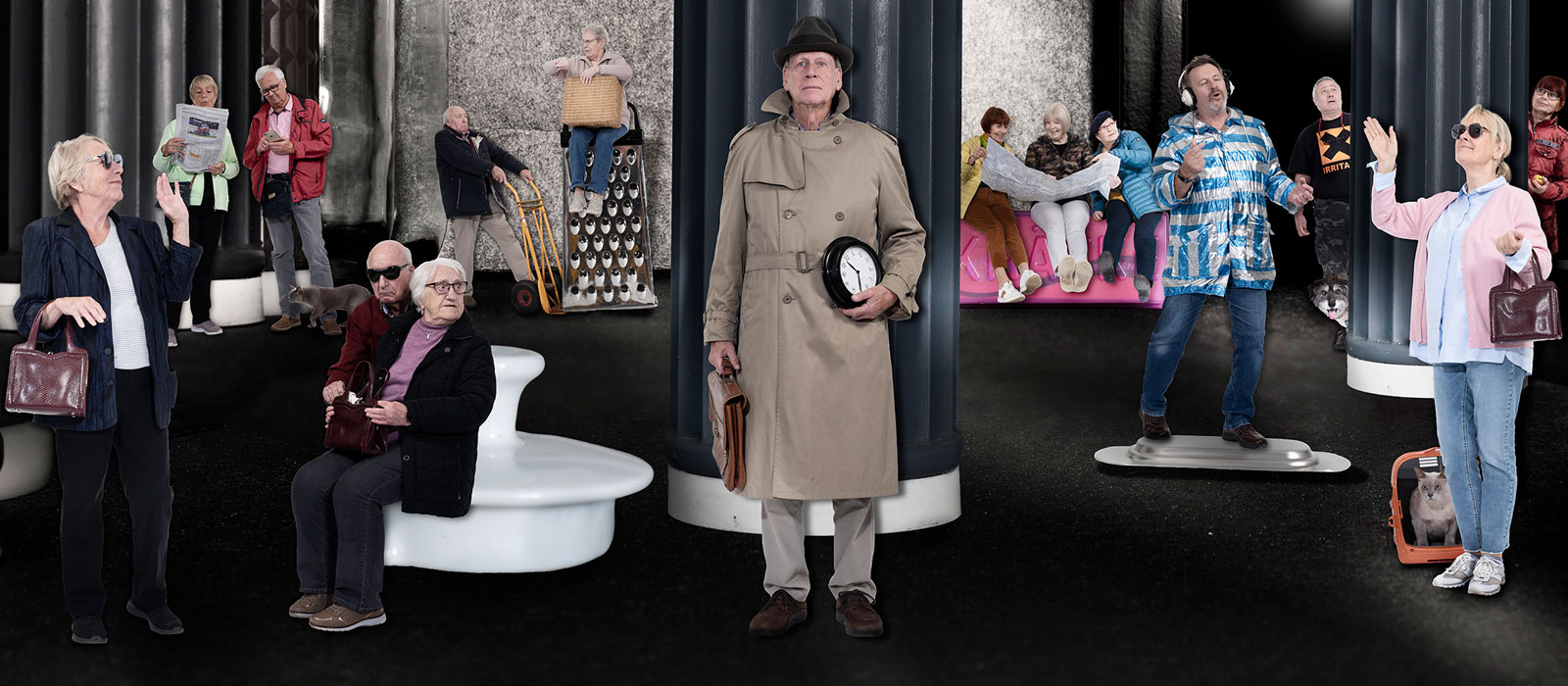 Im Hamburger Stadtteil Rissen ist eine LeNa Senioren-Wohnanlage entstanden. Auch hier soll eine Begegnung neuer Bewohner*innen ermöglicht werden und zugleich Fotos zur Verschönerung der Flure entstehen. Als Ausgangspunkt für das Fotografieren steht die Frage nach gemeinsamen Lieblingsorten, hier sollen die Szenen spielen (nachträglich in einer Fotomontage). Die Spielfreude ist ungebremst: die Bewohner*innen zögern nicht ihre Haustiere mit zu bringen genauso wenig wie im Bademantel oder Badeanzug zum Fotoshooting zu erscheinen. Wohlgemerkt: ein Bademantel für alle!
