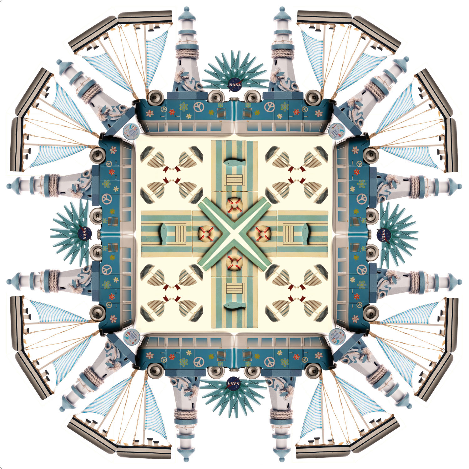 In der frisch bezogenen Wohnanlage LeNa (Leben und Nachbarschaft) im Hamburger Stadtteil Vierbergen sollte eine Begegnung der neuen Bewohner*innen ermöglicht werden und zugleich Fotos entstehen, die die Flure verschönern. Während Corona-Zeiten kein einfaches Unterfangen, daher fand das Projekt über ein Schaufenster im Haus und später über ein eintägiges Event draußen statt, bei dem unzählige Dinge aus den Wohnungen zusammengetragen wurden nach Sammelkriterien, die die Senior*innen selbst gewählt hatten. Entstanden sind daraus große Dinge-Mandalas, die die Stockwerke nicht nur verschönern, sondern auch eine Orientierung auf den Stockwerken geben.